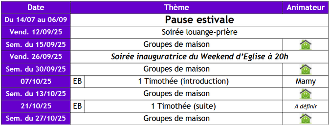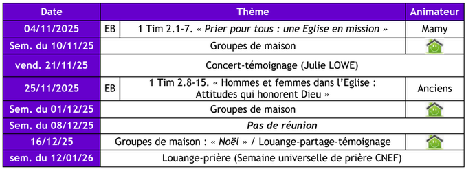 Les groupes de maison sont organisés un mardi sur deux à partir de 20h30 en alternance avec les études bibliques (voir planning au-dessus) dans différents foyers de Palaiseau et de Massy. Lors de ces rencontres chaleureuses et en petit groupe, nous apprenons à mieux nous connaître les uns les autres. Cette atmosphère plus intimiste est propice au partage des fardeaux et des joies de chacun, ce qui nous permet ensuite de prier plus spécifiquement pour les besoins individuels. Nous prenons aussi toujours un temps pour méditer ensemble un texte biblique et mieux nous l'approprier par les questionnements et réactions du groupe. Le GDM est assurément une respiration bienfaisante dans la semaine, un temps au service de la communion fraternelle et de l'apprentissage collectif des textes bibliques. Tout cela autour de boissons et parfois de délicatesses préparées par l'hôte(sse) des lieux :)